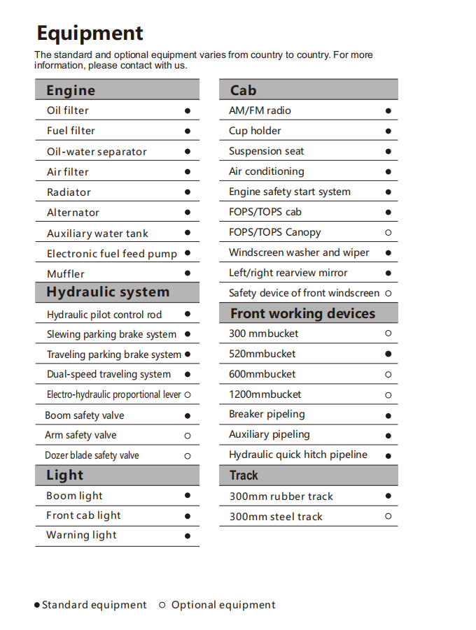 | Max Digging Height | 5045 mm | 198 in |