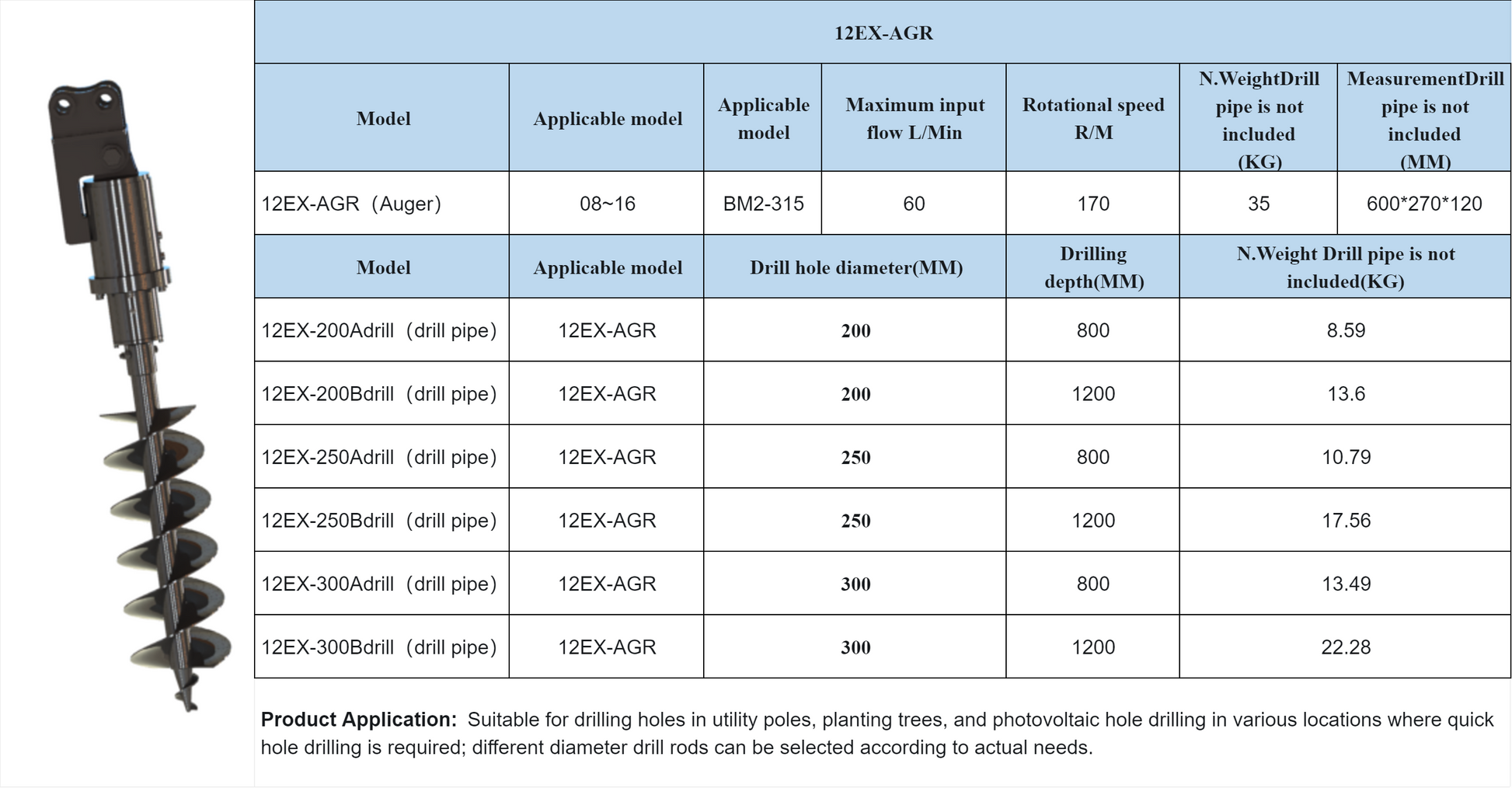 Auger For AGT Mini Excavator | 12EX-AGR